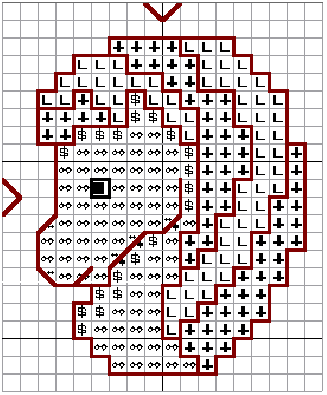 Stitched on 14 count aida cloth, this small design will be approximately 1" (2.5 cm) wide, and just over 1.25" (3 cm) high.